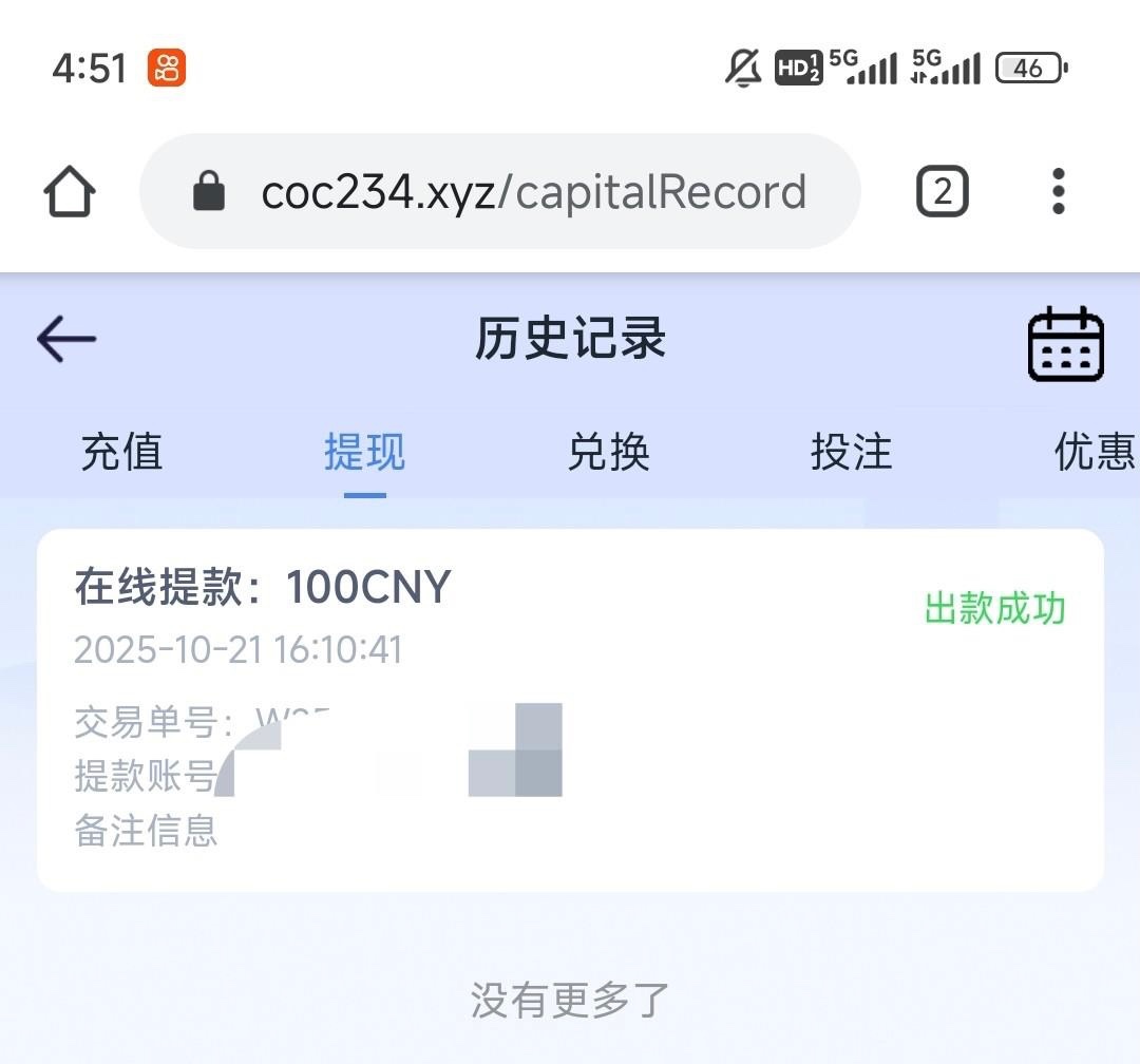 地址coc22.com 先随便注册个账号,联系客服如果是特邀会让你去绑定手机 成功出款100